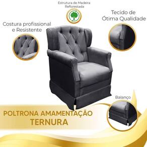 Poltrona Cadeira De Amamentação Balanço Ternura Suede Star Confort Chumbo A poltrona amamentacao, proporciona todo o conforto e aconchego que a familia precisa nesta fase tao especial, e encanta pelo seu estilo sofisticado. Feita com materia-prima de alta qualidade a poltrona possui estofado revestido por tecido de toque suave que proporciona aconchego para os momentos de amamentacao. A poltrona possui um balanco suave em sua base, e um encosto alto com espuma de excelente densidade e estrutura solida de madeira. Caracteristicas: Estrutura: fabricado com Madeira Eucalipto Reflorestada, e alguns detalhes em MDF Assento: Espuma D20 Encosto: Espuma D12 Braco: Espuma D14 Base/Pes: Madeira Eucalipto Reflorestada Peso Suportado: 150 Kg Necessita de Montagem: Nao