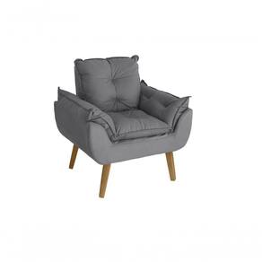 Poltrona Cadeira Decorativa E Puff Glamour Com Pés Quadrado Cinza