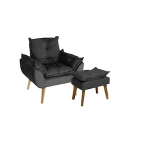 Poltrona/Cadeira Decorativa E Puff Glamour Com Pés Quadrado Preto - Kit poltrona com Puff
