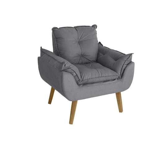 Poltrona/Cadeira Decorativa Glamour Com Pés Quadrado Cinza - Poltrona