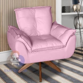 Poltrona/Cadeira Decorativa Glamour Opala Com Base Giratória 30cm em Madeira - Rosê
