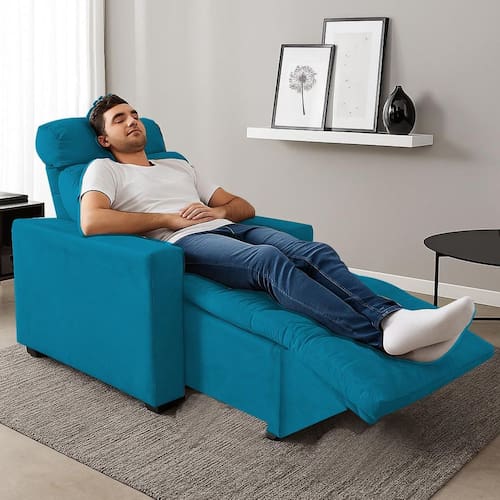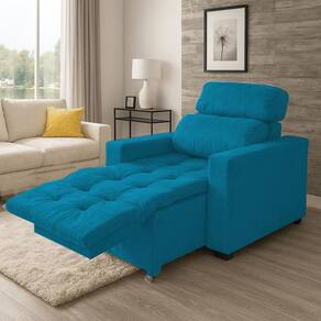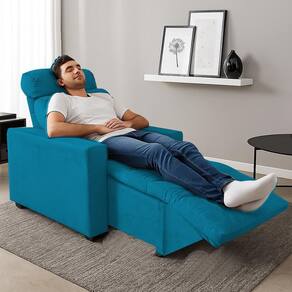 Poltrona Cadeira Do Papai E Mamãe Reclinável Retrátil Para Sala De Descanso Madri Turquesa - Azul Turquesa