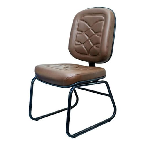 Poltrona Cadeira Escritório Diretor Fixa Costurada Base Ski Cadeira Diretor Home Office Escritório com Base Fixa - Marrom