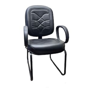 Poltrona Cadeira Escritório Preta Costurada Diretor Base Ski Cadeira Diretor Home Office Escritório com Base Fixa - Preto