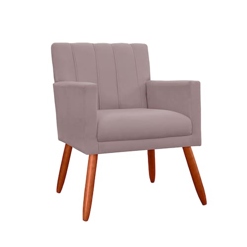 Poltrona Cadeira Estofada Para Hall de Entrada Cecília Suede Rosê - LM DECOR