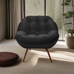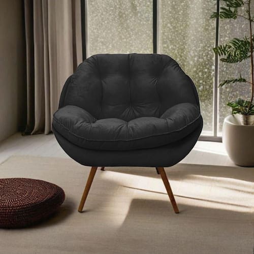 Poltrona Cadeira Landal Poltrona Sala Com Apoio De Braço Em Fibra Siliconizada - Sentô Preto