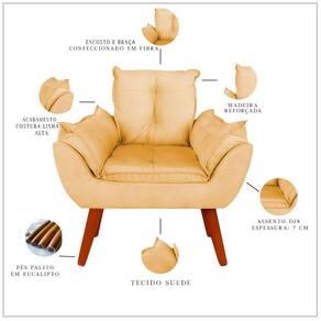 A poltrona decorativa opala proporciona um toque de charme e beleza em seu lar, feita com matéria prima de primeira qualidade, revestida apenas de fibra e percinta no assento e encosto. cotar antes de fechar a compra Especificações: Estrutura: mdf e eucalipto Tecido: suede Pés: madeira Dimensões externas: Altura : 89 cm Largura: 86 cm Comprimento: 86 cm Dimensões internas: Altura encosto x assento: 53 cm Altura do chão até o assento: 50 cm Profundidade do assento: 52 cm Largura do assento: 46 cm Pés palito envernizados cor Encosto e braça em fibra siliconada Acento em espuma d 23 espessura de 7 cm Peso suportado: até 100 kg sem impacto de fábrica 90 dias para somente defeito de fábrica. Atenção. Estaremos disponíveis dentre o horário comercial para atender sua solicitação. O motivo é que cada reclamação aberta prejudica nós como vendedores. Aguardamos à compreensão. Instruções de limpeza: utilizar um pano limpo e seco. Não limpar com escovas ou produtos abrasivos, No prazo de não é permitido fazer impermeabilização, pois caso seja feita perde totalmente . Obs: este produto é recomendado para ambientes residenciais em áreas internas, por isso, não o deixe exposto à luz direta do sol, para que não sofra alteração na cor Montagem é simples e dever do cliente somente rosquear os pés . Puff magnus pé palito Especificações técnicas Puff redondo; Estrutura em madeira mdp Acabamento tecido suede Revestimento em espuma d 26 03 pés de madeira maciça envernizado Sistema de montagem: Você vai adquirir produto com os pés desmontados sendo de fácil montagem rosqueamento Marca: Decore.Com