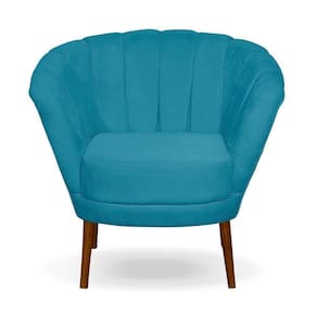 Poltrona Cadeira Pétala Flor Decorativa Suede Azul Tiffany