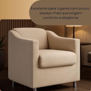 Seus pés cromados adicionam um toque moderno e refinado, elevando a estética do ambiente com leveza visual e um brilho sutil. O assento generoso e o encosto ergonômico acolhem com suavidade, tornando cada pausa um momento de puro relaxamento.