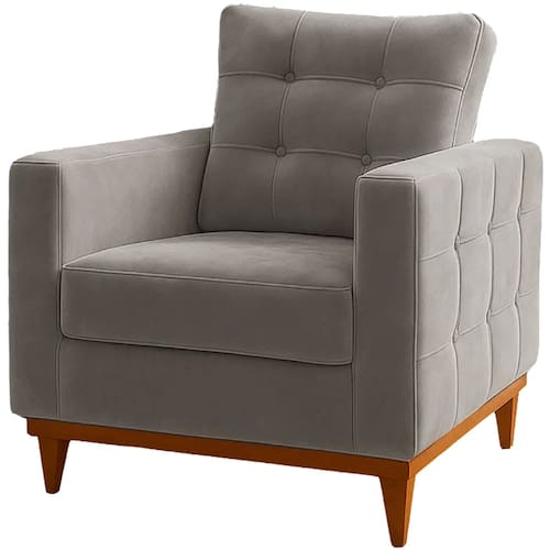 Poltrona California em Veludo com Almofada Solta RR Estofados Procurando um toque de sofisticação e conforto para seu lar? A Poltrona California em Veludo com Almofada Solta RR Estofados é a escolha perfeita. Esta peça exala elegância com seu revestimento, proporcionando um toque macio e um brilho sutil que eleva qualquer ambiente. O design clássico e atemporal do modelo se integra harmoniosamente a diversas decorações, desde as mais modernas até as mais tradicionais. Construída com materiais de alta qualidade, a Poltrona Califórnia garante durabilidade e resistência, assegurando que você desfrute de momentos de puro conforto por muitos anos. Seja na sala de estar, no quarto ou em um canto de leitura, ela será o destaque do seu espaço, convidando ao descanso e ao bem-estar. Adicione um toque de luxo e aconchego com esta peça excepcional da RR Estofados.\nMEDIDAS\nAltura 100 cm\nLargura 83 cm\nProfundidade 82 cm\nCARACTERÍSTICAS\nFabricante RR Estofados\nModelo Poltrona California em Veludo\nGarantia 3 meses\nTipo de produto Poltrona\nAmbiente Sala\nAssento Percinta Elástica, Espuma D26, Molas Bonnel\nEncosto Almofada solta preenchida com Fibra Siliconada\nMaterial Pés Madeira Maciça\nINFORMAÇÕES IMPORTANTES\nObjetos decorativos que porventura apareçam na foto, não acompanham o produto. Não nos responsabilizamos pela montagem/instalação dos produtos.\nMontagens, desmontagens e instalações são responsabilidades do cliente. Indicamos que contrate uma empresa de montagem ou um montador de sua confiança.\nAlém disso, favor verificar se os pés e acessórios estão dentro do forro inferior do produto. Em suma, todas as informações divulgadas sobre o produto são de responsabilidade do Fabricante.\nAs cores do produto podem variar de acordo com o seu monitor, a iluminação do ambiente em que você está e até mesmo a sua percepção visual. Além da cor, pequenos detalhes e acabamentos podem não ficar evidentes na foto, por isso as imagens são meramente ilustrativas