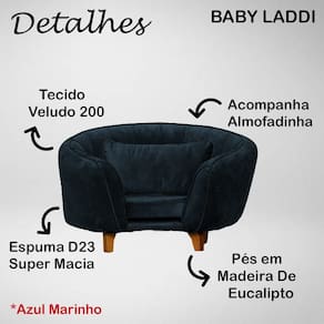 Poltrona Cama Caminha Pet Baby Laddi Veludo, é uma peça de mobiliário especialmente projetada para oferecer conforto e aconchego ao seu pet de estimação. Estrutura produzida em Madeira de Eucalipto e MDF modelado, sendo perfeita tanto como poltrona quanto como cama para o seu pet. Possui um enchimento em espuma D23, que proporciona um suporte macio e confortável para o seu pet descansar, tecido utilizado na poltrona é veludo, resistente e de fácil limpeza, tornando a poltrona pet durável e prática de cuidar. Os 04 pés da poltrona são feitos de madeira de eucalipto com acabamento envernizado em tinta PU com haste para fixação.