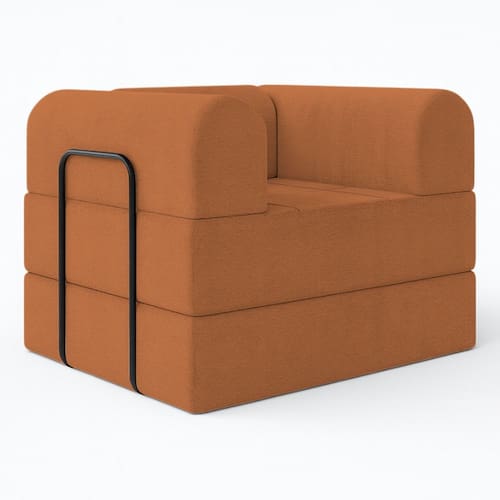 Modular, a Axel oferece diversas opções de montagens: configure como Cama Solteiro ou Poltrona estilo convencional, adaptando o layout às suas necessidades. É a escolha ideal para salas de estar, apartamentos compactos, quartos de hóspedes, studios e ambientes comerciais.