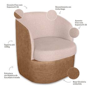 Caracteristicas: Marca: Movellu Home Modelo: Carrara Estrutura: Madeira de Reflorestamento Tratada -eucalipto- devidamente aparelhada Reforcos de Cantoneiras e Chapas em MDF Material da Base: Manta Acrilica Material dos Pes: Plastico 3cm Com Base Giratoria Embutida Densidade da Espuma da Base: D-26 Densidade da Espuma do Assento: D-28 Densidade da Espuma do Encosto: D-28 Densidade da Espuma do Braco: D-23 Altura do chao ate o Assento: 45cm Profundidade do Assento: 50cm Largura do Assento: 55cm Altura do Encosto: 40cm Tipo de Encosto: Almofada -Assento Fixo- Tipo de Assento: Fixo Detalhes/aplicacoes: Acabamento no Corino Peso Maximo Suportado: 150 Kg