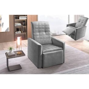 Poltrona Decorativa p/ Sala Reclinável do Papai Top Suede Cinza - Paropas