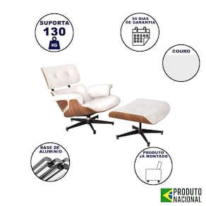 AS IMAGENS SÃO MERAMENTE ILUSTRATIVAS E PODEM SOFRER VARIAÇÕES DE COR E PEQUENOS DETALHES DE ACORDO COM O SEU MONITOR, ILUMINAÇÃO DO AMBIENTE E ATÉ MESMO A SUA PERCEPÇÃO VISUAL.Poltrona Charles Eames com Puff Couro LegÃtimo Branco