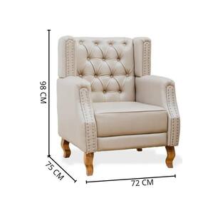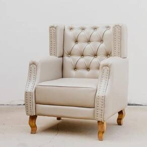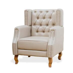 Poltrona Chesterfiel Berger Couro Pérola com Pés Madeira