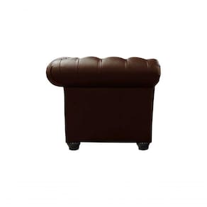 Misturar estilos não chega a ser uma regra na decoração. Mas se pretende sair da monotonia, e criar uma ambientação atemporal ou dar mais personalidade à sua casa, aposte em uma decoração eclética e nada melhor que um ícone do estilo clássico como a Poltrona de Couro Chesterfield para fazer essa combinação, o modelo possui encostos fixos com espuma D-26 soft, assentos soltos com suspensão de percintas elásticas trançadas e espuma D-33 soft revestida com manta de silicone, seus braços são de espuma D-26 soft materiais que promove ainda mais conforto a Poltrona de couro Chesterfield, totalmente revestido de couro que torna seu design ainda mais imponente e sofisticado além de trazer alta durabilidade é fácil de ser limpo, sua estrutura de madeira de reflorestamento (eucalipto) e pés de madeira tingida garante mais resistência a Poltrona de Couro Chesterfield.