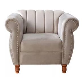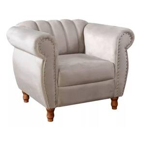 Poltrona Chesterfield Realeza Vintage Retrô Suede Bege Claro