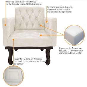 - A Poltrona Decorativa Classic chegará montada para você, bastando rosquear os pés;