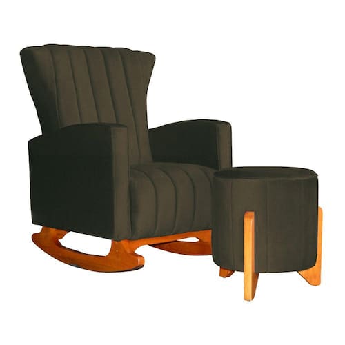 Poltrona Com Balanço E Puff Melinda Suede Marrom Mz Decor