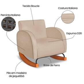 A Poltrona Cindy em bouclé oferece o equilíbrio perfeito entre estética contemporânea, conforto e um movimento de balanço relaxante. Seu design com linhas curvas cria acolhimento imediato, enquanto o tecido bouclé traz textura sofisticada e toque extremamente agradável. A base feita em madeira Jequitibá com ferro garante estabilidade e um balanço suave, ideal para momentos de descanso, leitura ou amamentação.