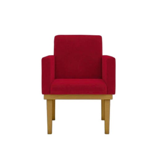 Poltrona com base decoração copa do mundo brasil Cor: vermelho A poltrona nina traz muita segurança e conforto para seu ambiente. Sua estrutura é 100% em madeira eucalipto e todo conforto se deve a espuma com densidade d-23. Com um design sofisticado, a poltrona nina conta com acabamento em suede. Para quem indicamos nossas poltronas - para os amantes da leitura; - para trazer sofisticação para sala de estar; - para trazer aconchego em seu quarto; - para proporcionar comodidade ao seu escritório ou home office. E claro... Para presentear quem mais amamos Qual o material utilizado - tecidos suede; - espuma d-23; - percintas elásticas; - estrutura 100% madeira eucalipto; - pés madeira de eucalipto. Produto suporta até 120 kg. Garantia de fábrica de 03 meses contra defeito de fabricação. Você receberá: Uma poltronas nina com base reforçada Instruções de montagem: Produto montado, sendo necessário apenas rosquear os pés. Observações importantes: -todos os produtos vão embalados com total segurança. - pode haver alguma diferença de tonalidade entre a imagem e o produto, por conta do tratamento de imagens e a calibração de cores da sua tela. Modo de limpeza: - limpar com pano limpo e moderadamente úmido Especificações técnicas Travamento da estrutura com grampos em aço galvanizados e parafusos com flange de 5 mm; Acento sustentado por percintas elásticas; Madeira de reflorestamento eucalipto; Tecido suede 100% poliéster. Dimensões Altura: 87 cm Largura: 61 cm Profundidade: 60 cm Peso: 10,5 kg
