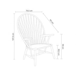 Informações Complementares: Poltrona em madeira de freixo, com apoio de braços e encosto, assento em palha sintética
