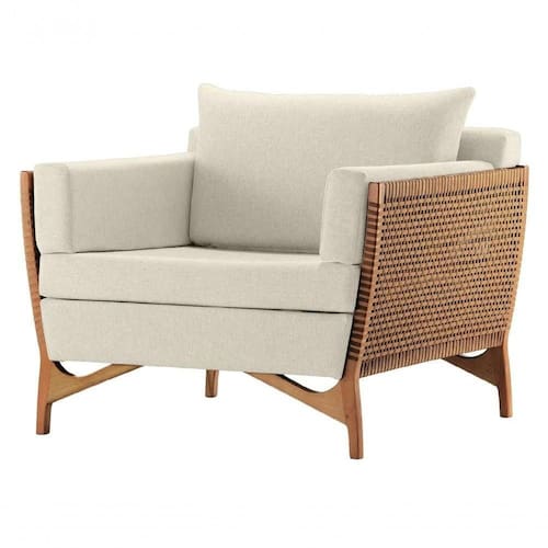 A poltrona com braço Cutiê traz a essência da trama artes feita pelos artesões nordestinos, construída em madeira sustentável de eucalipto na cor cedro, utiliza uma fita larga que proporciona um efeito rústico e elegante, misturando a corda e a madeira, junto com as almofadas de braço. Apresenta em sua essência um design expressivo e ergonômico, propondo a união da forma e função com conceito visual inovador. Habilidosos e experientes artesãos, cuidam de cada detalhe, para criar essa peça diferenciada, construindo um pilar entre a inspiração e o conhecimento na busca de algo e autêntico.