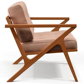 A Poltrona Decorativa Sala de Estar com Cintas de Corano Laís B04 Linho Rosê - Lyam Decor se sobressai em qualquer ambiente, permite diversas combinações harmônicas e ainda proporciona muito aconchego. A mistura das percintas de couro com o revestimento convencional dela, somados à sua estrutura em madeira, na cor nozes, com um ar mais geométrico garantem extrema idade e personalidade para sua decoração.