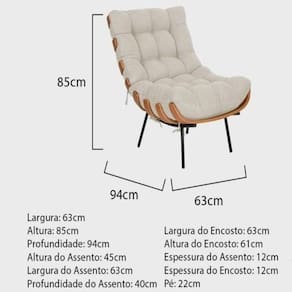 - A poltrona chegará montada, fixar apenas as madeiras da braça.