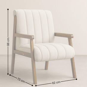 Seu assento e encosto fixos, com percintas elásticas e espuma de alta densidade D-24, proporcionam firmeza e comodidade. O acabamento refinado, com cortes em linhas enceradas, e o revestimento em tecido bouclé premium oferecem um toque contemporâneo, elegante e sofisticado para qualquer ambiente.