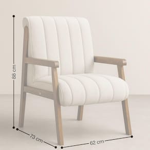 Seu assento e encosto fixos, com percintas elásticas e espuma de alta densidade D-24, proporcionam firmeza e comodidade. O acabamento refinado, com cortes em linhas enceradas, e o revestimento em tecido bouclé premium oferecem um toque contemporâneo, elegante e sofisticado para qualquer ambiente.