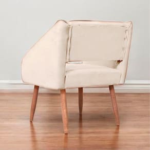 Estrutura: Madeira Maciça de eucaliptoRevestimento: Tecido Veludo de alta qualidadeAssento: Fixo, estofado com espuma D26Encosto: Fixo, estofado com espuma D18Pés: Sim, pés palito de madeira maciça de eucaliptoPeso Suportado: Suporta o peso de 100 kilosDimensões do produto montado