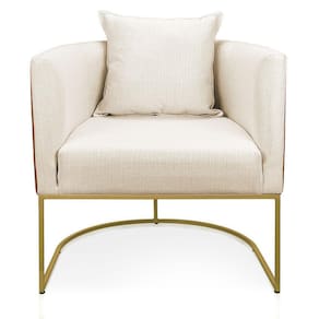 Poltrona Paola Corano Nozes Com Linho Grosso Bege A19 Base Metálica Dourado - D'rossi