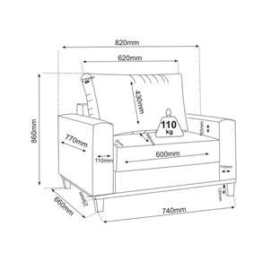Caracteristicas: Estrutura em MDP, 4 pes de madeira. Possui 1 mola bonel no assento, Espuma D23, Encosto fixo, almofada Solta 100 fibra siliconada, Revestimento tecido corino Suporta peso de ate 110kg
