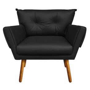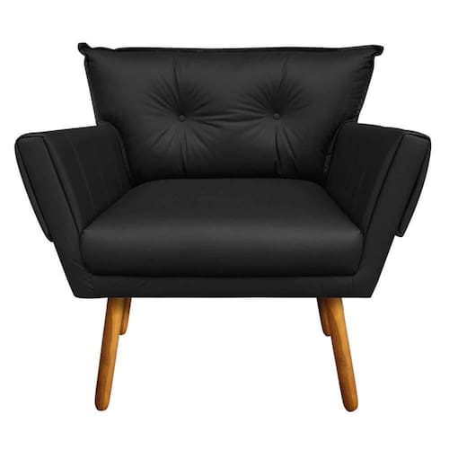 Poltrona Anitta Corino Preto Pés Palito Castanho D'Rossi