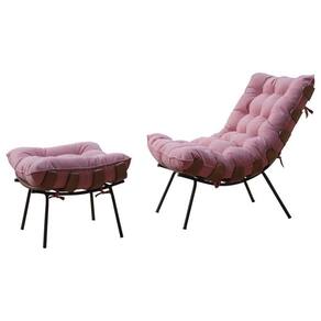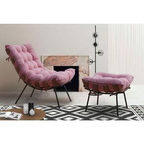 Poltrona Costela Adão Com Puff Veludo :rosê