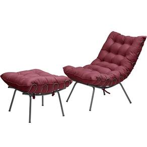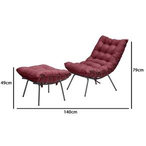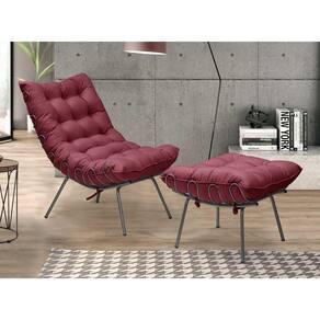 Poltrona Costela Adão Ferro Puff Estrutura Preto Para Sala Moderna Decorativa Veludo Bordô
