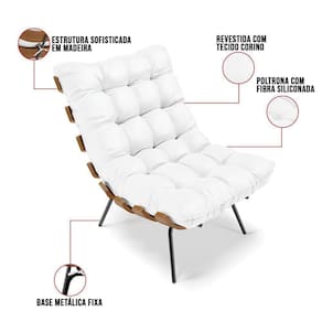 Poltrona Costela, o nome se explica por si só não!? Seu design marcante remete às costelas do corpo humano, além de ser muito confortável. Uma peça perfeita para decorar sua sala de estar. Sua estrutura em metal, assento e encosto em madeira, as almofadas são super macias, em detalhes capitonê com fibra siliconada, revestido no tecido Corino no tom Branco. Fala aí se não é perfeita para valorizar o seu espaço! Que tal deixar seu cantinho de descanso mais aconchegante e com muita elegância? Escolha já a sua.