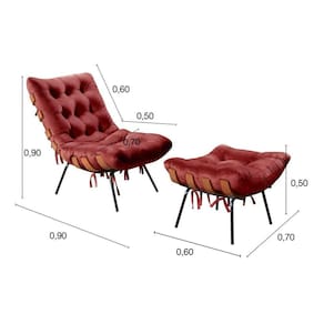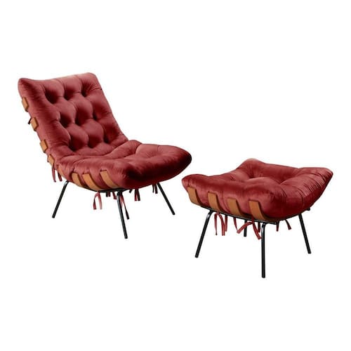 Poltrona Costela de Adão com Puff Botonê Decoração Sala Varanda Recepção - Bordô