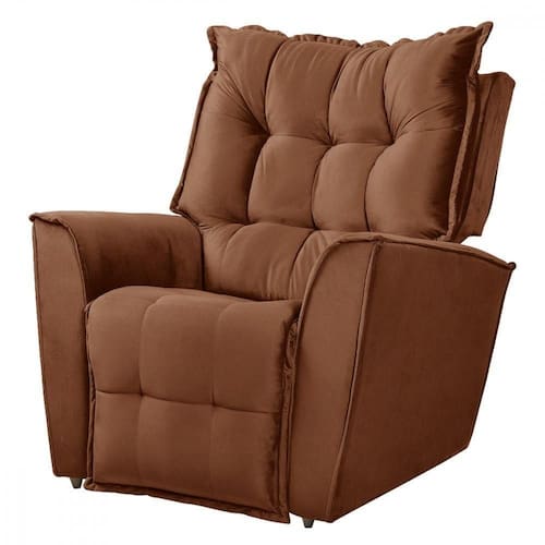 Poltrona Da Mamãe Reclinavel Carinho Veludo Terracota Terracota A Poltrona Carinho e a combinacao perfeita de conforto, sofisticacao e versatilidade. Com um estofamento macio e apoios acolchoados, foi cuidadosamente projetada para oferecer o maximo de bem-estar em diferentes momentos do seu dia a dia, seja para ler um livro, assistir ou simplesmente relaxar. Sua funcao reclinavel, com multiplas posicoes, garante um conforto personalizado, permitindo total relaxamento. Com um design elegante, ela se adapta facilmente a diversos ambientes, adicionando um toque de classe e funcionalidade ao seu espaco. DE FABRICA Ao comprar conosco, voce tem a confianca de estar adquirindo um produto de qualidade. E se, por algum motivo, o produto apresentar algum dentro de 90 dias, oferecemos total assistencia, ja que somos os fabricantes. Nosso compromisso e garantir que sua experiencia de compra seja excepcional, mantendo sempre uma relacao de confianca com nossos clientes. Sua satisfacao e nossa prioridade. Dimensoes da Poltrona Fechada: Altura: 104 cm Altura do Encosto: 68 cm Largura Total: 105 cm Largura do Assento: 51 cm Profundidade: 95 cm Profundidade do Assento: 52 cm Altura do Assento do Chao: 35 cm Largura de cada Braco: 14 cm Peso: 29,5 Kg