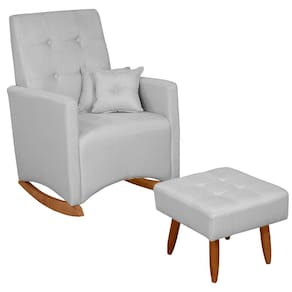 Madeira maciçaPoltrona de Amamentação Ana com Balanço Pés Canoa e Puff - Fratello