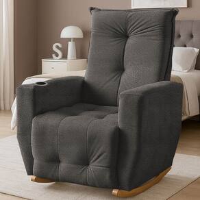A poltrona possui um balanço suave em sua base, e um encosto alto com espuma de excelente densidade e estrutura sólida de madeira.