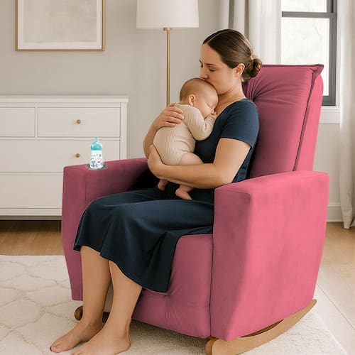 Feita com matéria-prima de alta qualidade a poltrona possui estofado revestido por tecido de toque suave que proporciona aconchego para os momentos de amamentação.
