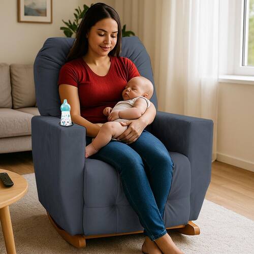 Feita com matéria-prima de alta qualidade a poltrona possui estofado revestido por tecido de toque suave que proporciona aconchego para os momentos de amamentação.