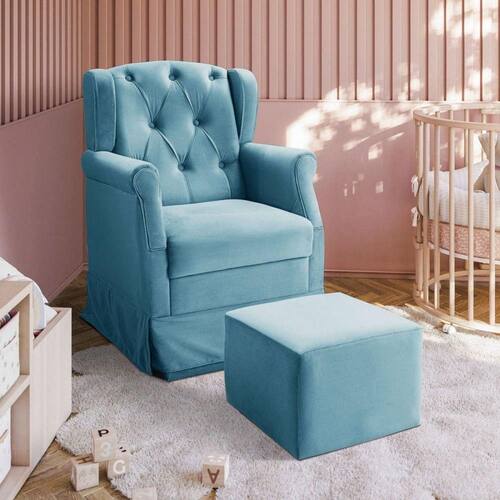 Poltrona De Amamentação Balanço Com Puff Ternura Corano Azul Azul A poltrona amamentacao proporciona todo o conforto e aconchego que a familia precisa nesta fase tao especial, e encanta pelo seu estilo sofisticado. Feita com materia-prima de alta qualidade a poltrona possui estofado revestido por tecido de toque suave que proporciona aconchego para os momentos de amamentacao. O puff quadrado traz conforto e beleza para a rotina da mamae, e ajuda no descanso para pernas e pes tornando o momento ainda mais confortavel. A poltrona possui um balanco suave em sua base, e um encosto alto com espuma de excelente densidade e estrutura solida de madeira. A GARANTIA E DE FABRICA Comprando conosco, alem das vantagens em adquirir um produto de qualidade e sofisticacao, se eventualmente o mesmo apresentar algum , dentro do prazo de noventa dias, por sermos os fabricantes, te daremos total assistencia. Queremos lhe proporcionar uma experiencia agradavel com a compra e a certeza de estar negociando com uma empresa que preza acima de tudo, pela relacao de confianca com o cliente, nossa maior satisfacao.