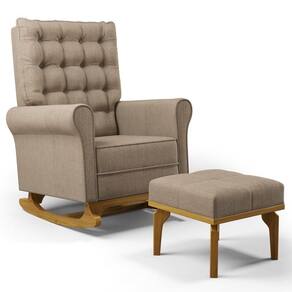 O móvel ideal para você que procura conforto, qualidade e sofisticação. Confira a Poltrona de Amamentação Balanço e Puff Base de Madeira Brenda G05 Linho Areia, da Mpozenato!