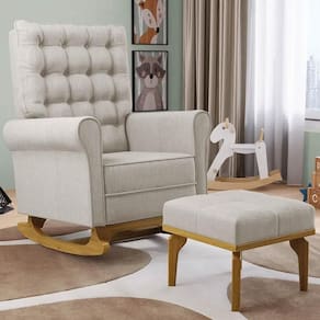 Uma Poltrona de Balanço feita com materiais de alta qualidade, estrutura em madeira de eucalipto, o tecido linho macio e resistente, e a espuma D23 a densidade ideal para o seu conforto, base em madeira com um lindo design e balanço suave, que ajuda a relaxar e a embalar o sono do seu bebê. O Kit Poltrona e Puff possui um design moderno e sofisticado, com detalhes em botonê revestido no encosto, que dão um toque de charme e elegância ao ambiente. A Poltrona de Amamentação também acompanha um puff pés madeira tecido linho, que serve como apoio para os pés ou como assento extra. O puff tem o mesmo acabamento da poltrona, criando um conjunto harmonioso e bonito.