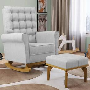 O móvel ideal para você que procura conforto, qualidade e sofisticação. Confira a Poltrona de Amamentação Balanço e Puff Base de Madeira Brenda G05 Linho Cinza, da Mpozenato!