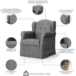 A Poltrona de Amamentação Balanço Letícia P04 Linho Cinza Escuro - Phoenix Baby é um móvel que alia conforto e design. Fabricada em madeira de Eucalipto de Reflorestamento, ela possui uma estrutura resistente e durável. Sua espuma D-20 e D-23 proporciona um conforto extra para os momentos de descanso e amamentação. O Balanço é um diferencial que ajuda a relaxar e acalmar tanto a mãe quanto o bebê. Além disso, o revestimento Linho é um tecido macio e agradável ao toque, que agrega modernidade e aconchego ao ambiente. Com a Poltrona Letícia, a mamãe terá um cantinho especial para cuidar do seu bebê com todo o conforto e estilo que deseja. Compre já!